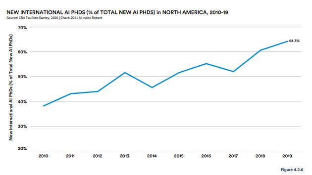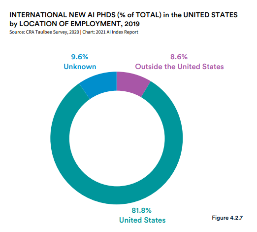 2)美加两国 AI 标的目的应届博士结业生的外籍比例提拔4.3%,总额高达400亿美元。此中81.8%选择留美;
